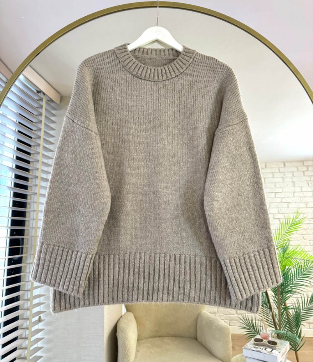Oversize Bisiklet Yaka Kazak Kum Beji
