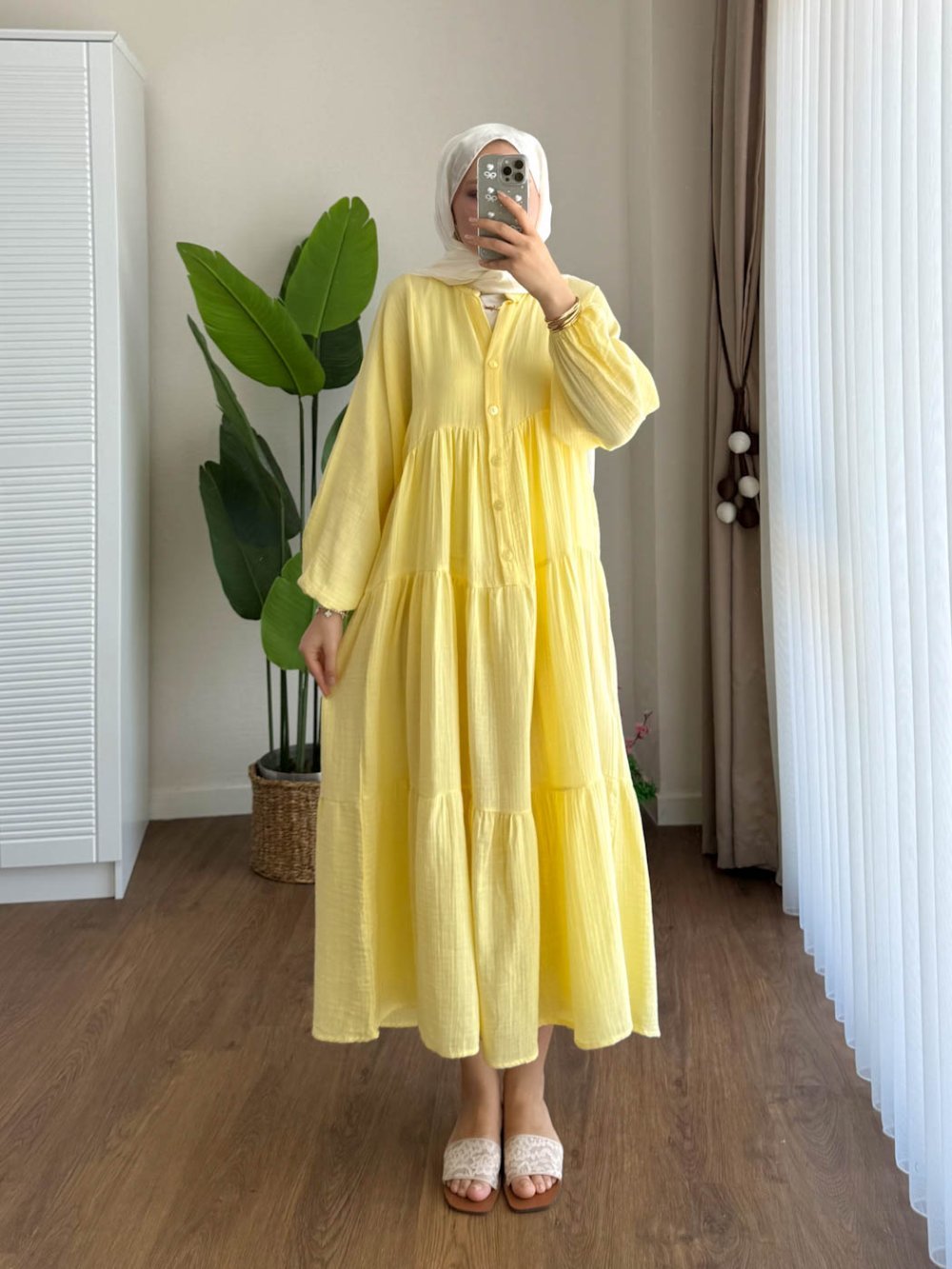 Oversize Müslin Elbise Sarı
