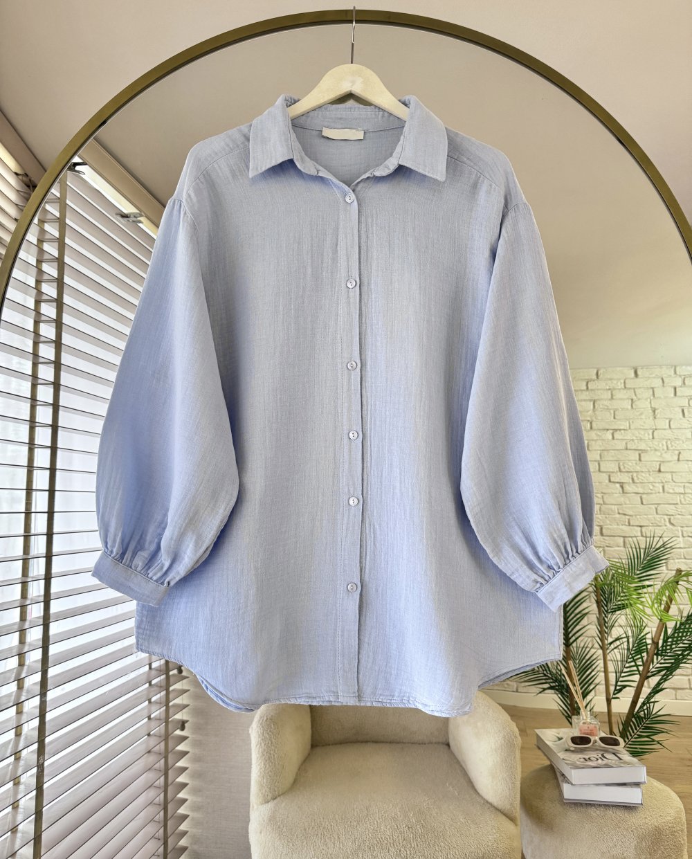 Oversize Müslin Gömlek Bebe Mavisi