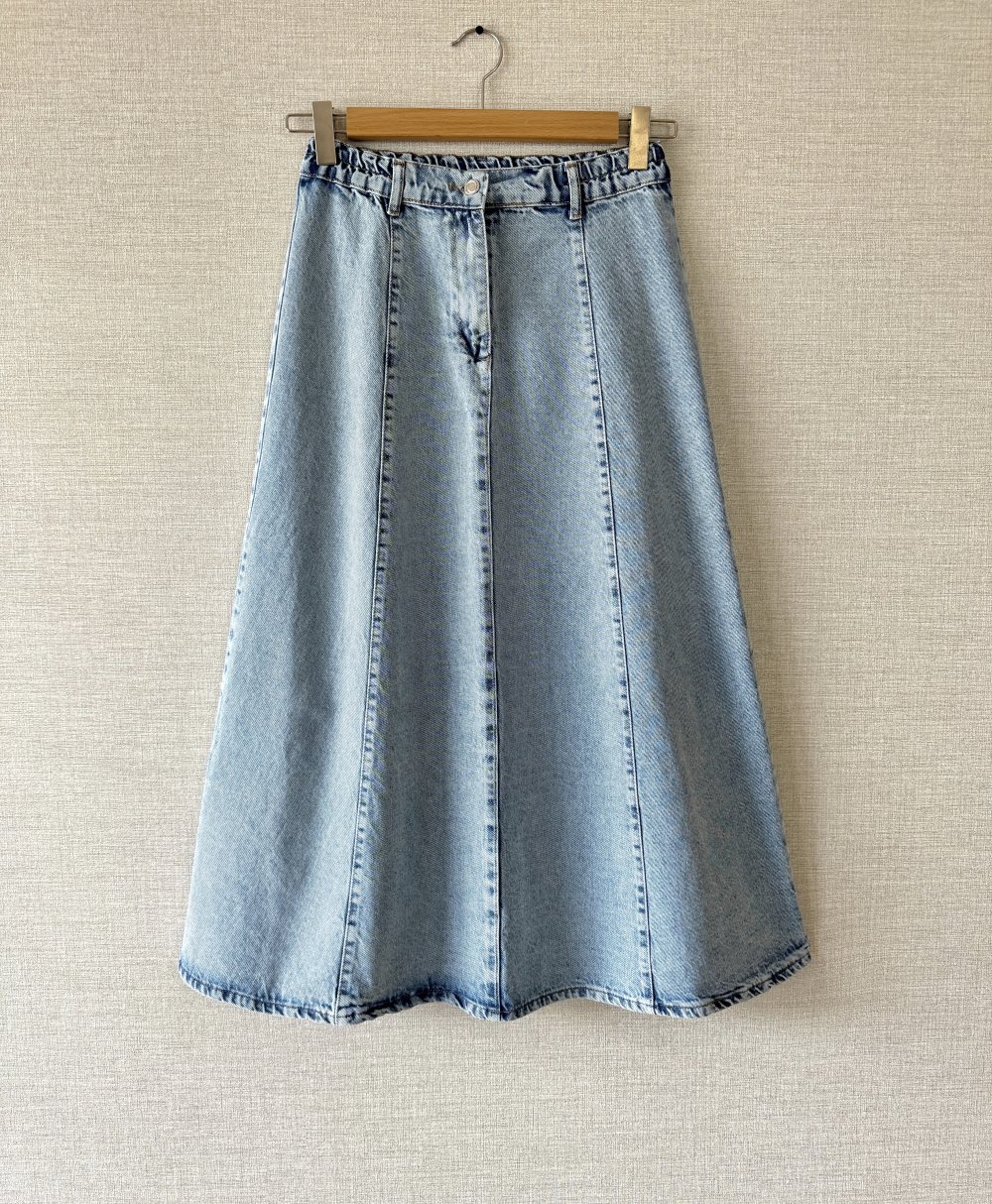 Parçalı Kot Etek Kar Yıkama Açık Mavi