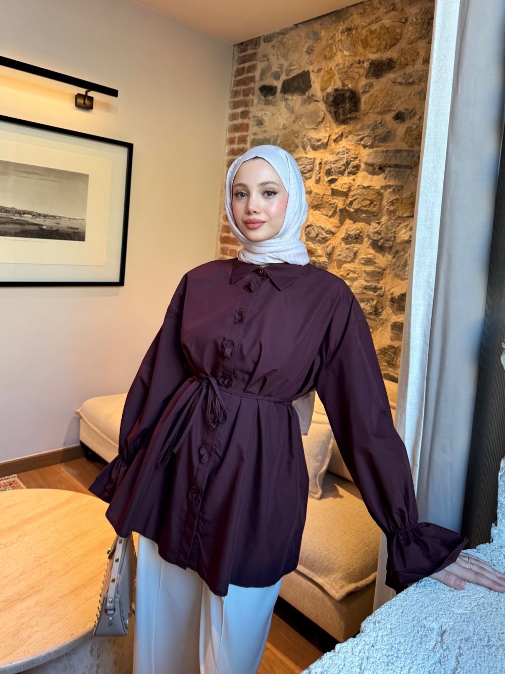 Patı Çiçekli Gömlek Bordo