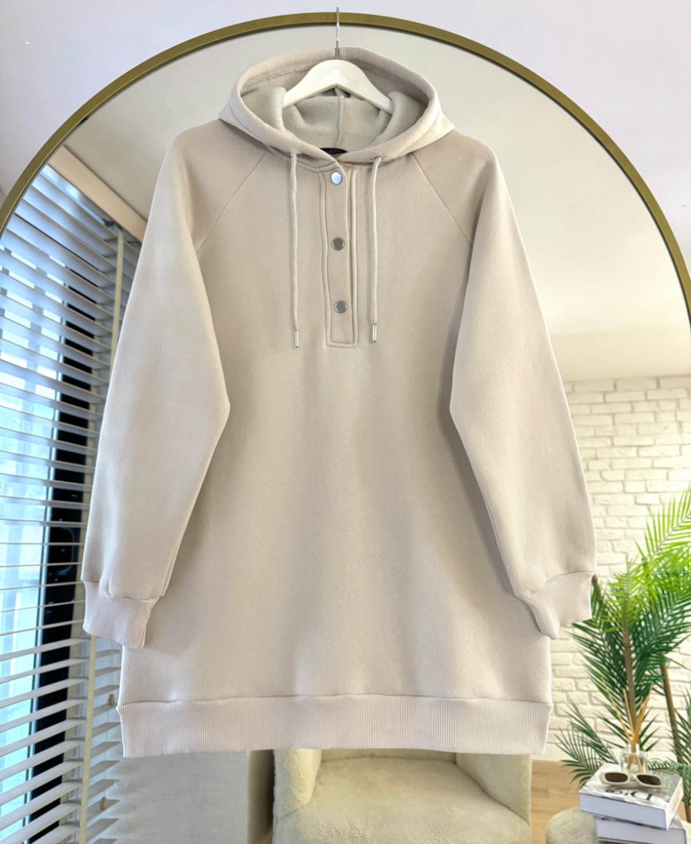 Patı Çıt Çıtlı Kapüşonlu Sweathirt Bej