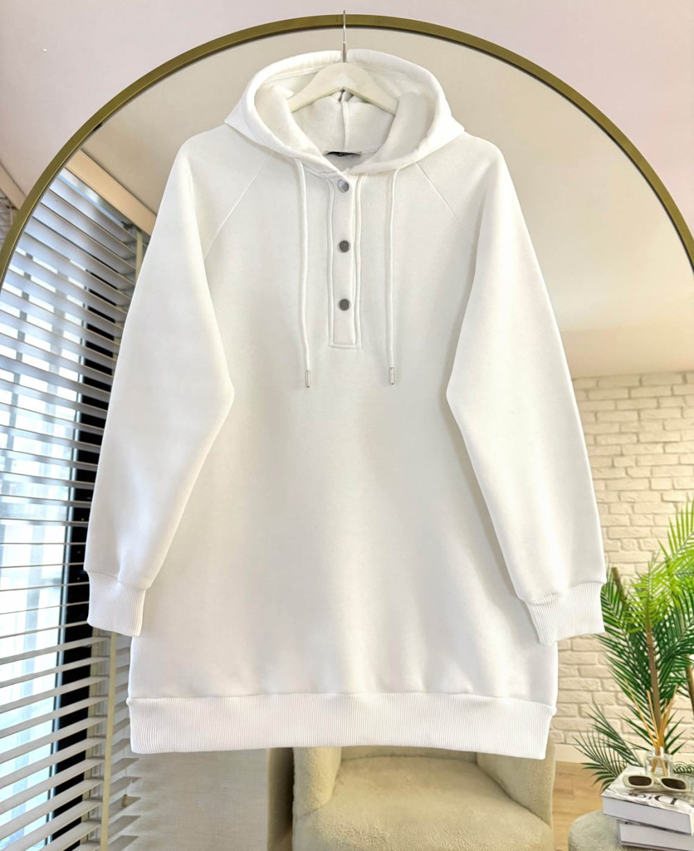 Patı Çıt Çıtlı Kapüşonlu Sweathirt Beyaz