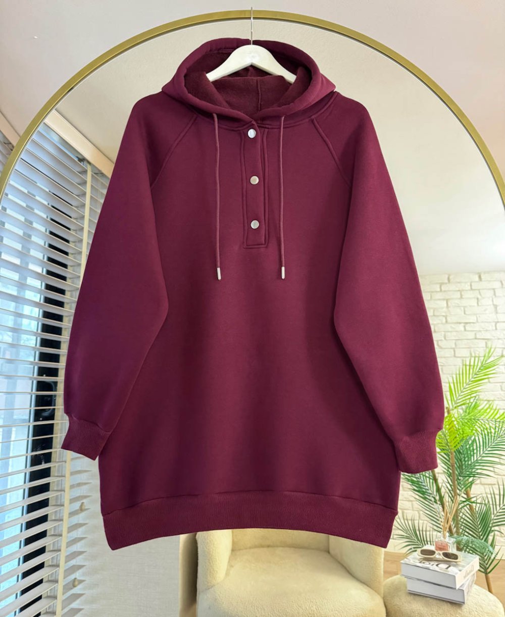 Patı Çıt Çıtlı Kapüşonlu Sweathirt Bordo