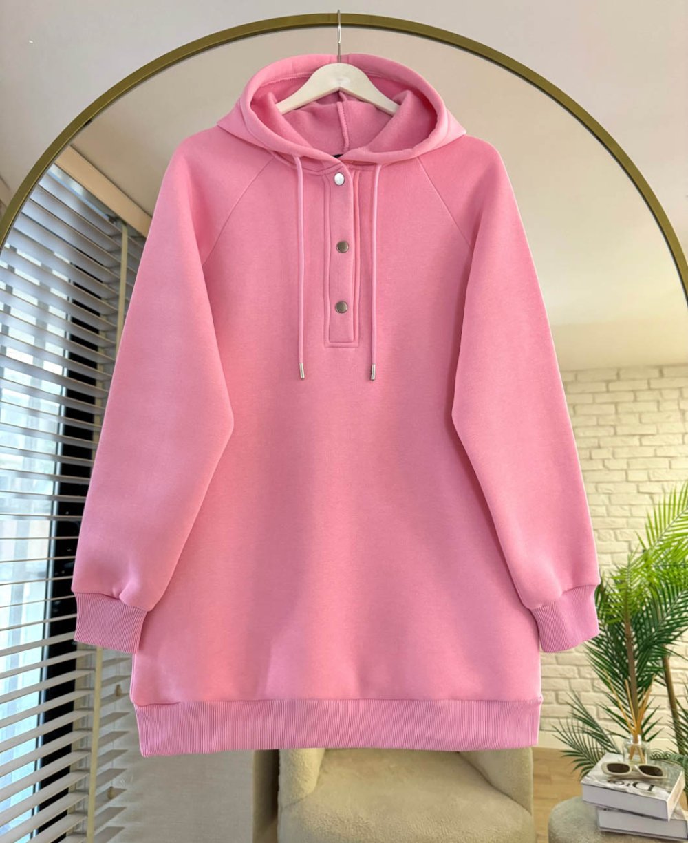 Patı Çıt Çıtlı Kapüşonlu Sweathirt Pembe