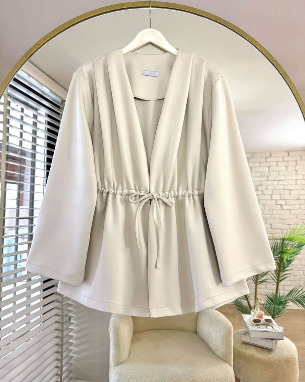 Pile Detaylı Büzgülü Scuba Ceket Bej