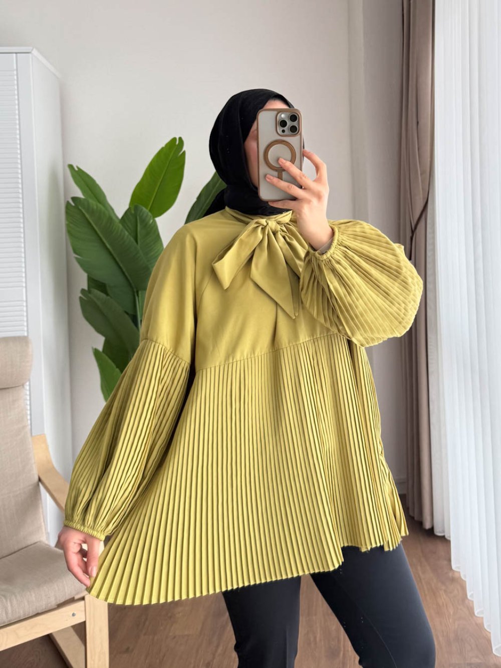 Piliseli Lose Gömlek Yağ Yeşili