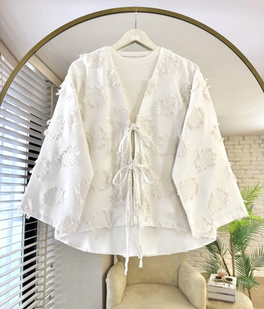 Püsküllü Keten Kimono Ekru