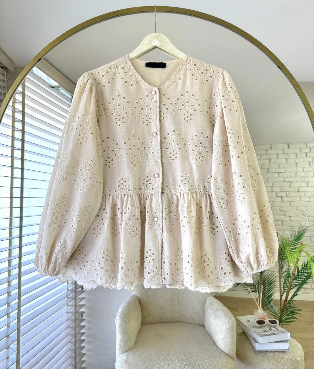 Robalı Brode Gömlek Bej
