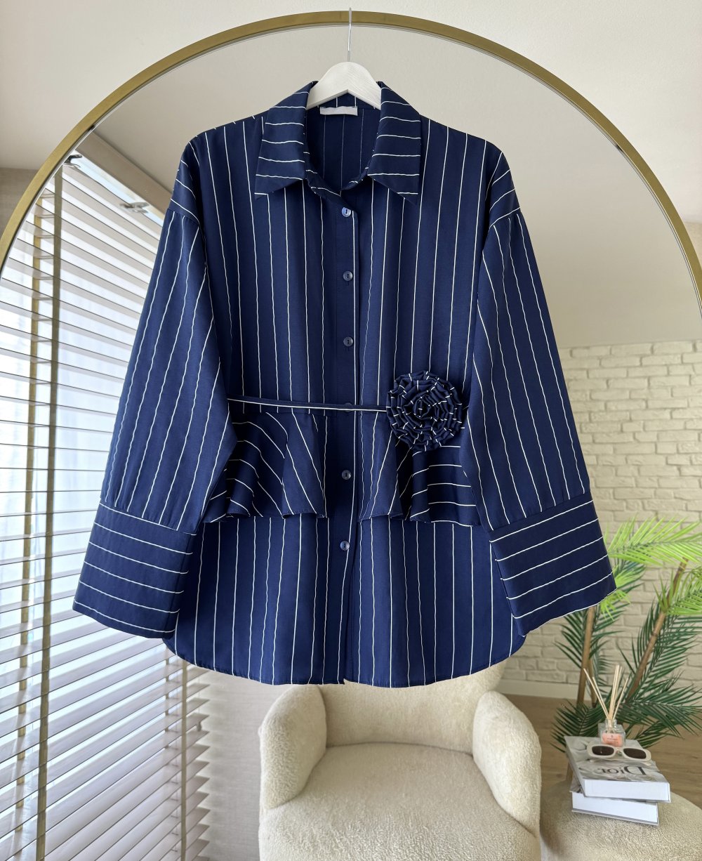 Rose Çizgili Gömlek Lacivert
