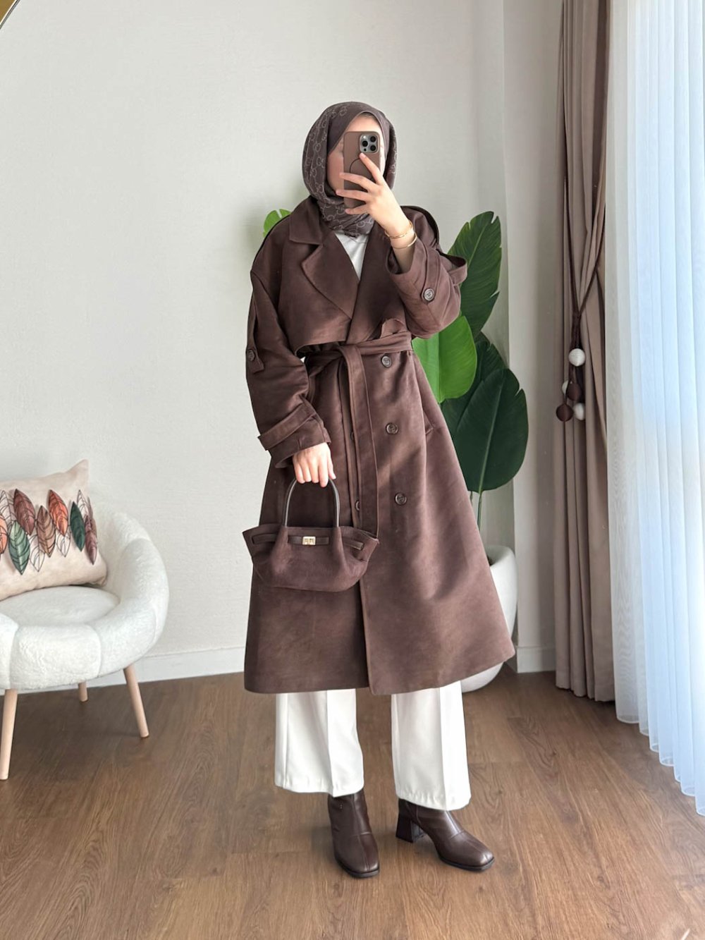 Rüzgarlıklı Süet Kaban Acı Kahve
