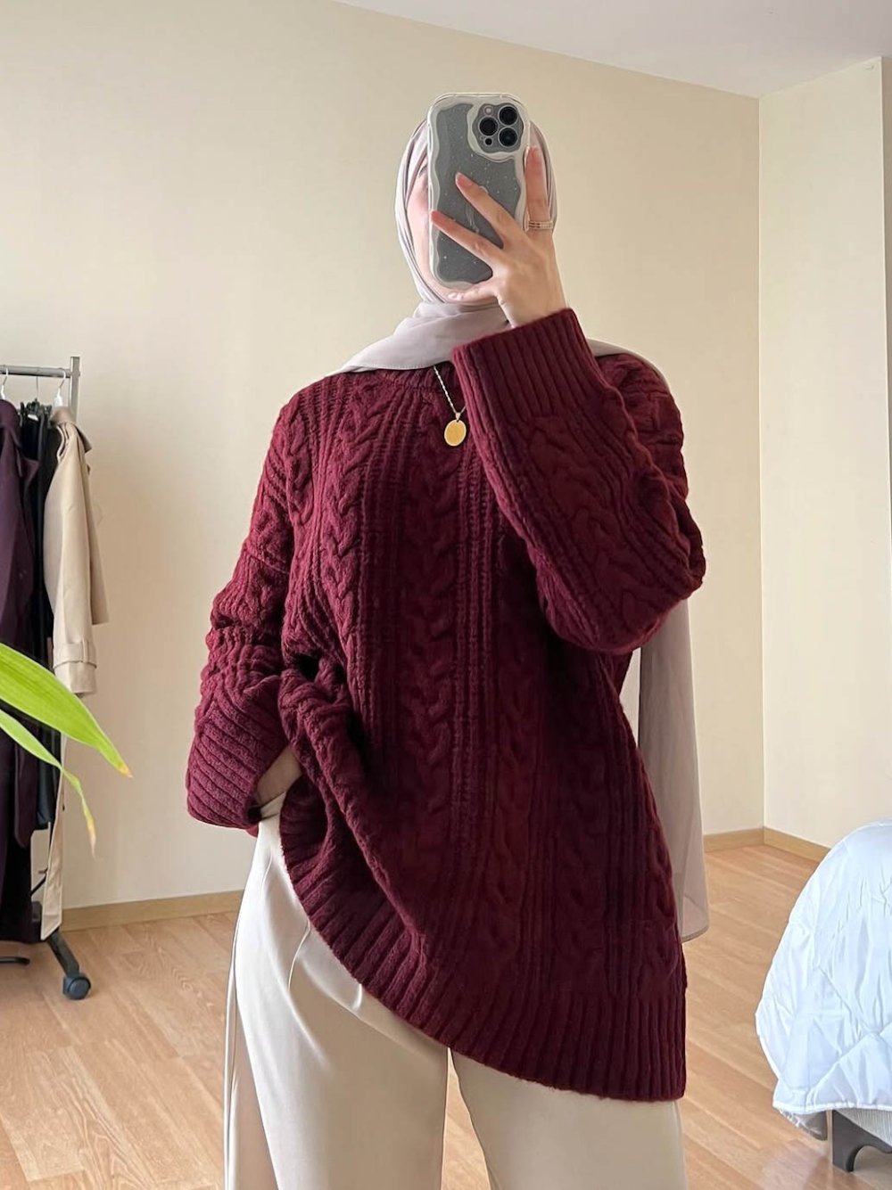 Saç Örgü İpek Kazak Bordo