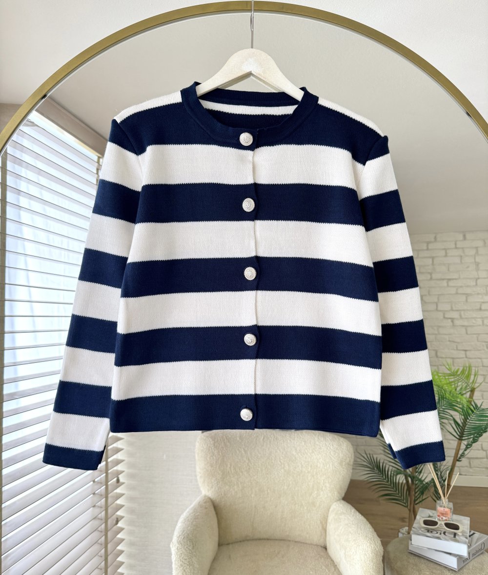 Şeritli Triko Hırka Lacivert
