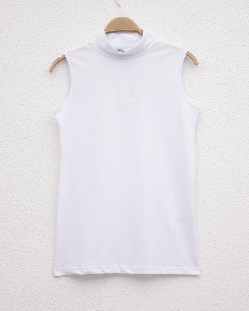 Sıfır Kol Balıkçı Yaka İçlik Beyaz