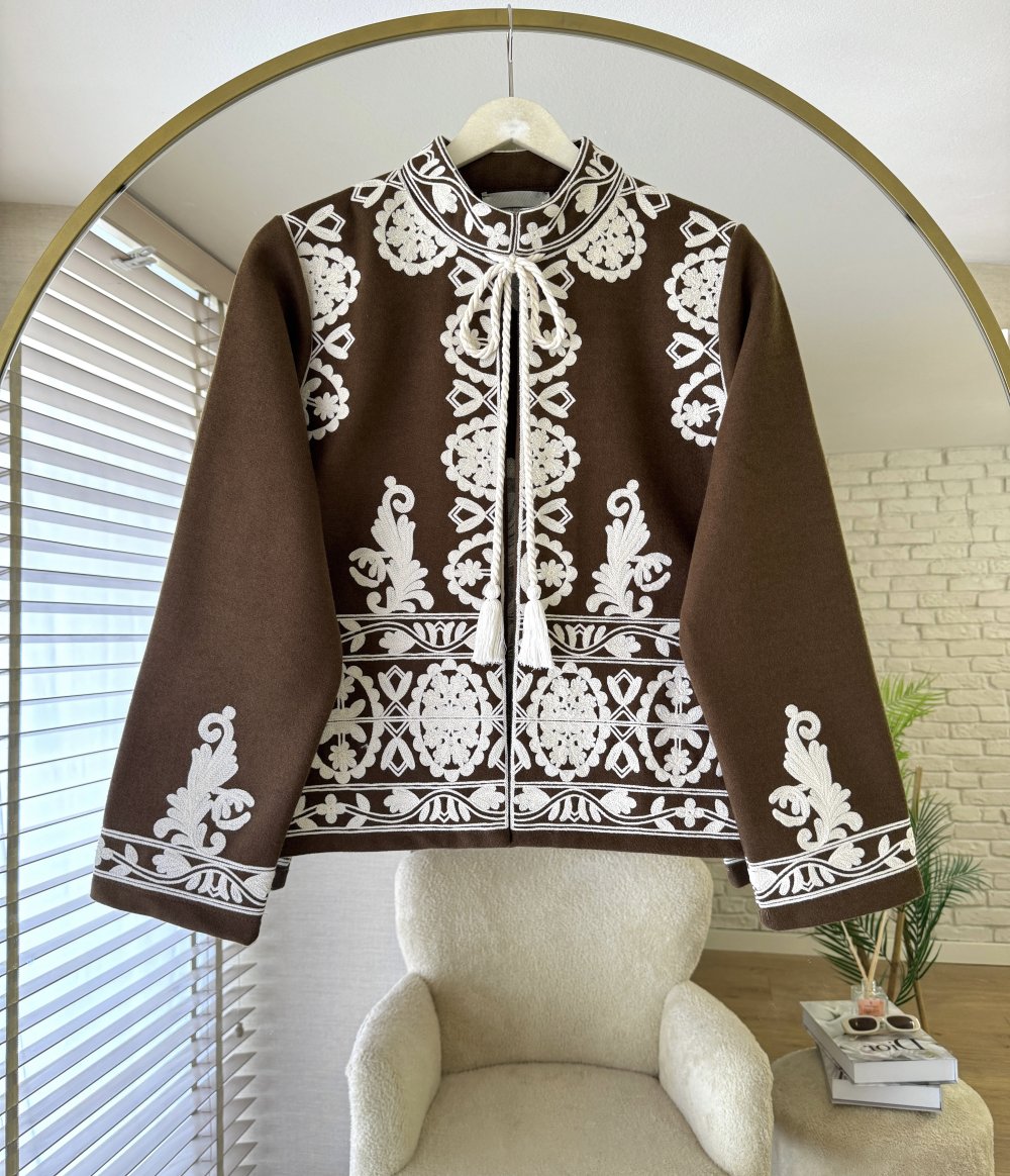 Süzeneli Kaşe Ceket Kahverengi