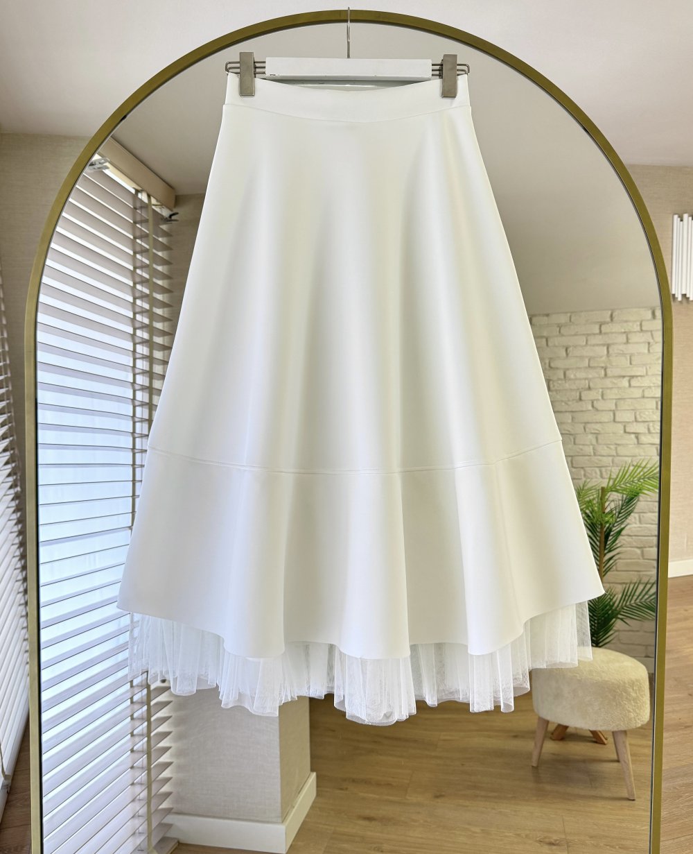 Tül Detaylı Scuba Etek Beyaz