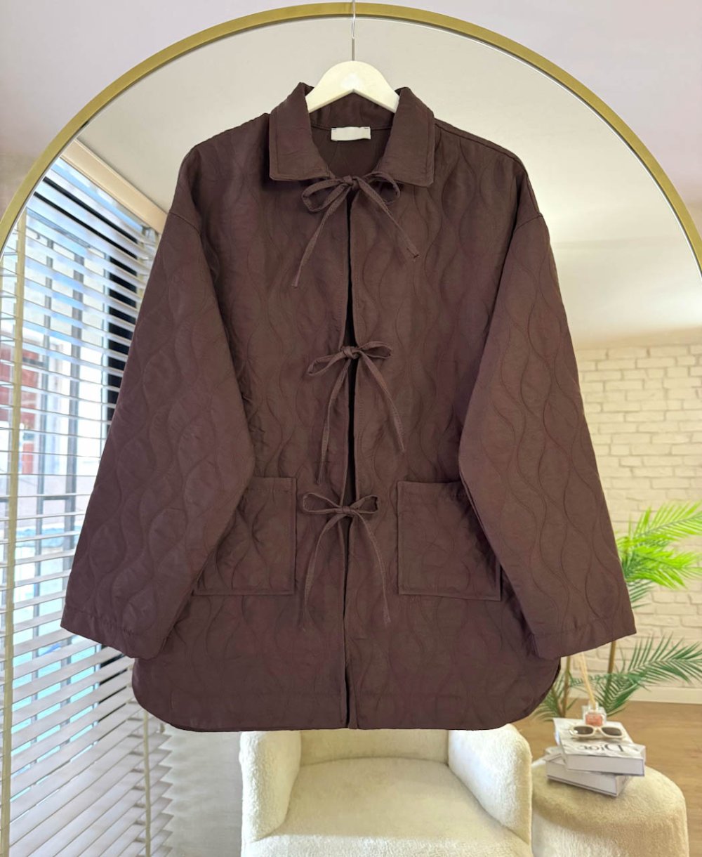 Üç Bağcıklı Kapitone Ceket Kahverengi
