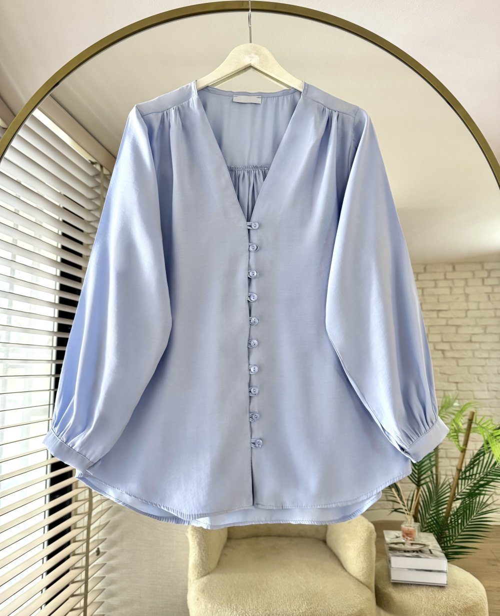 V Yaka Pes Modal Gömlek Bebe Mavisi