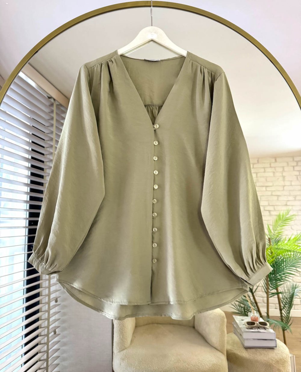 V Yaka Pes Modal Gömlek Küf Yeşili