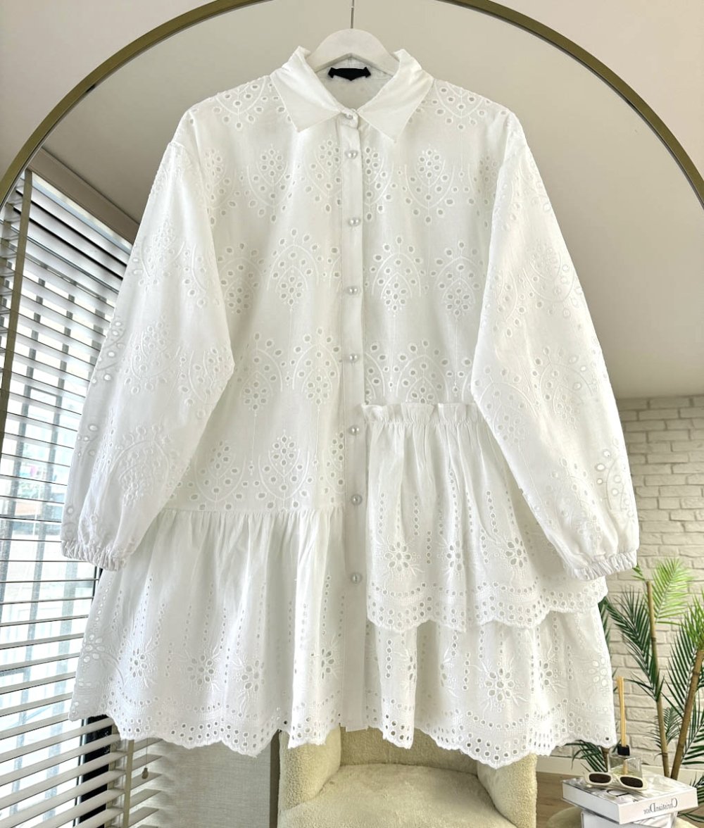 Volanlı Brode Gömlek Beyaz