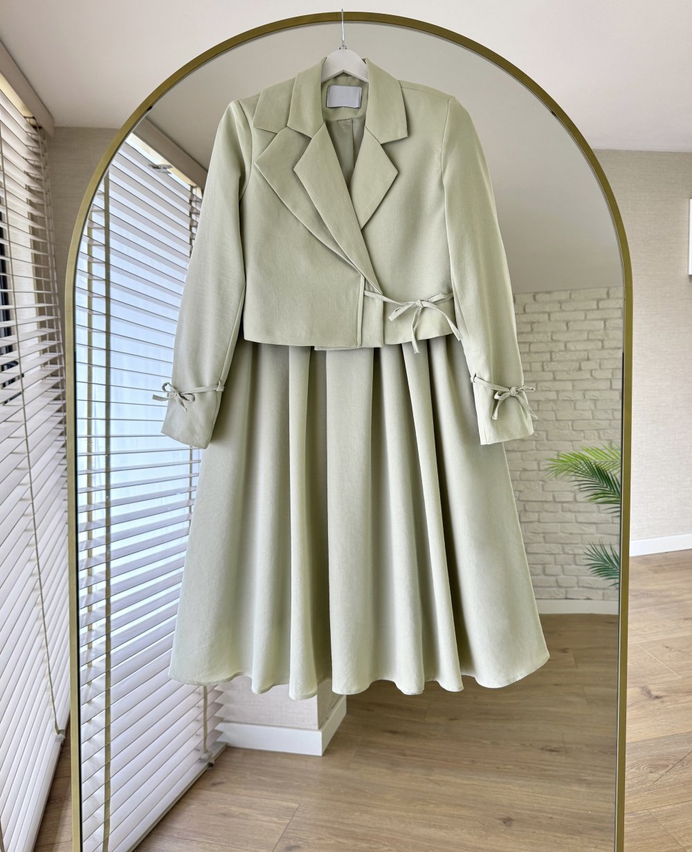 Yaka Detaylı Etekli Takım Yeşil