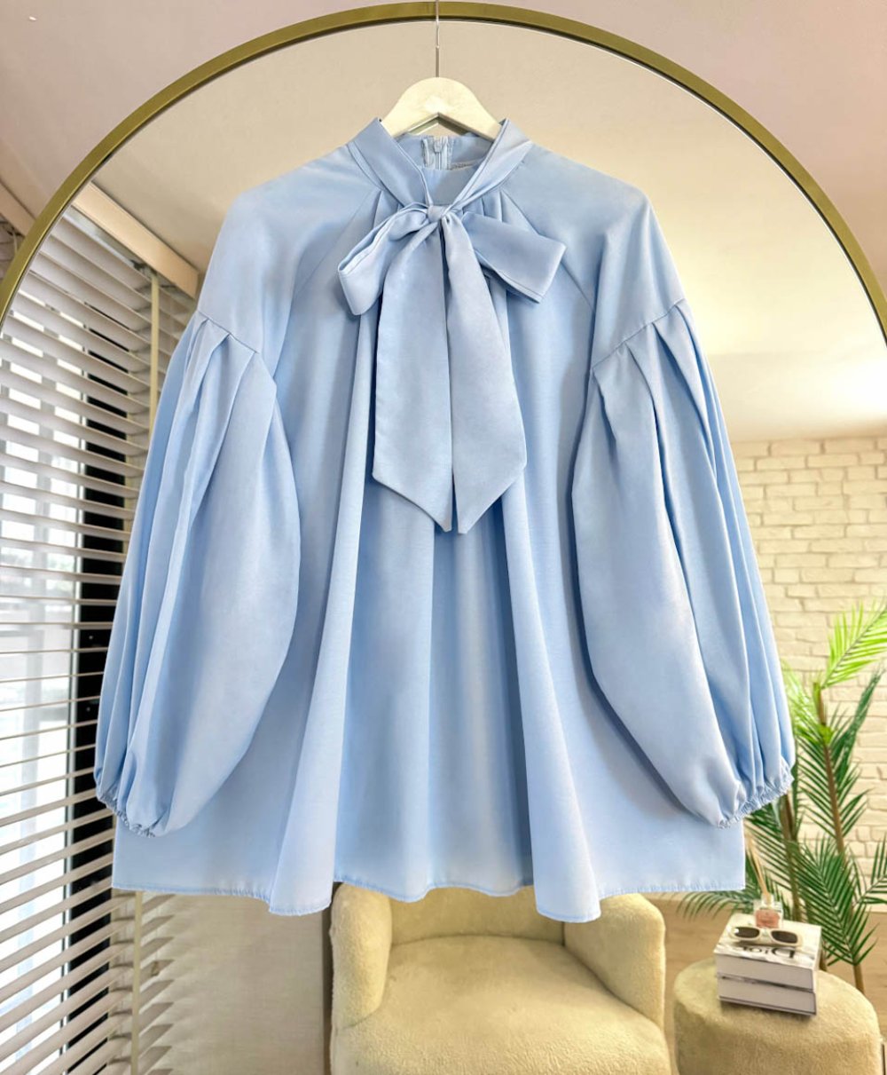 Yakası Bağlamalı Salaş Tunik Bebe Mavisi
