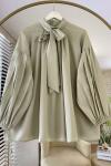 Yakası Bağlamalı Salaş Tunik Yeşil