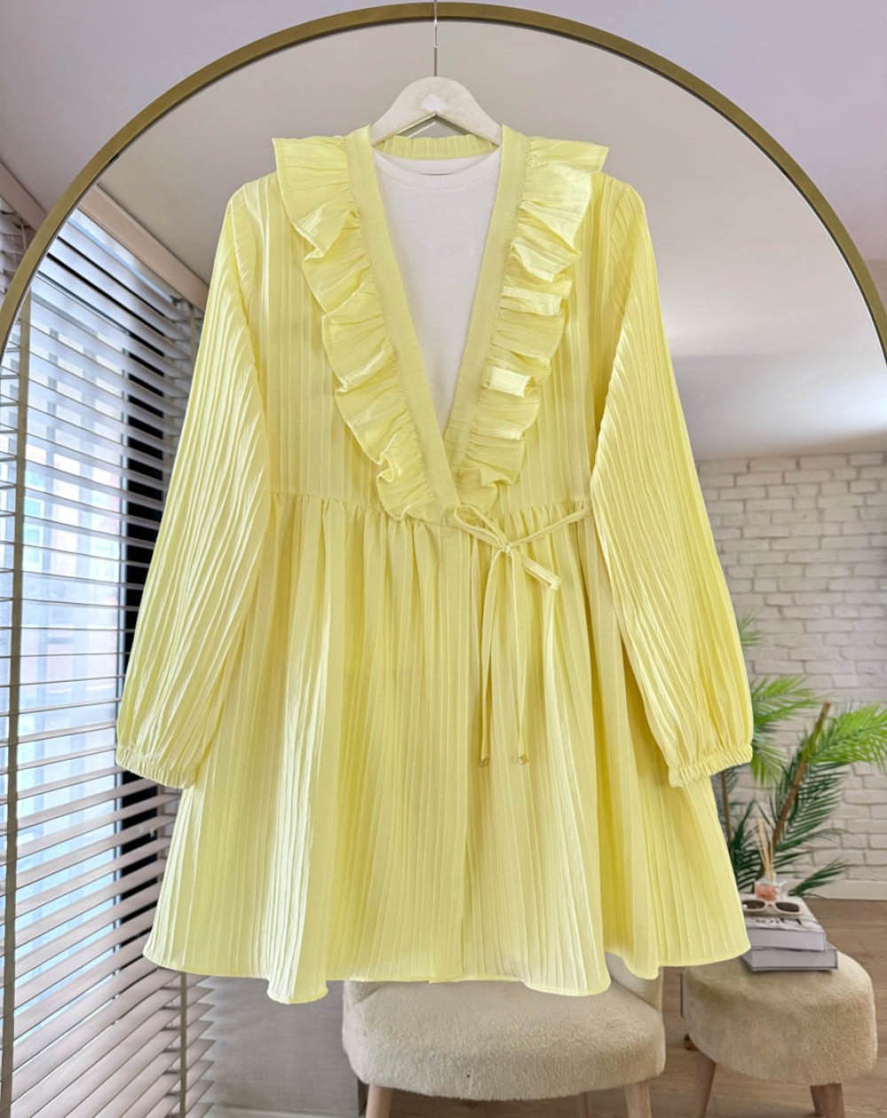 Yakası Fırfırlı Ceket Sarı