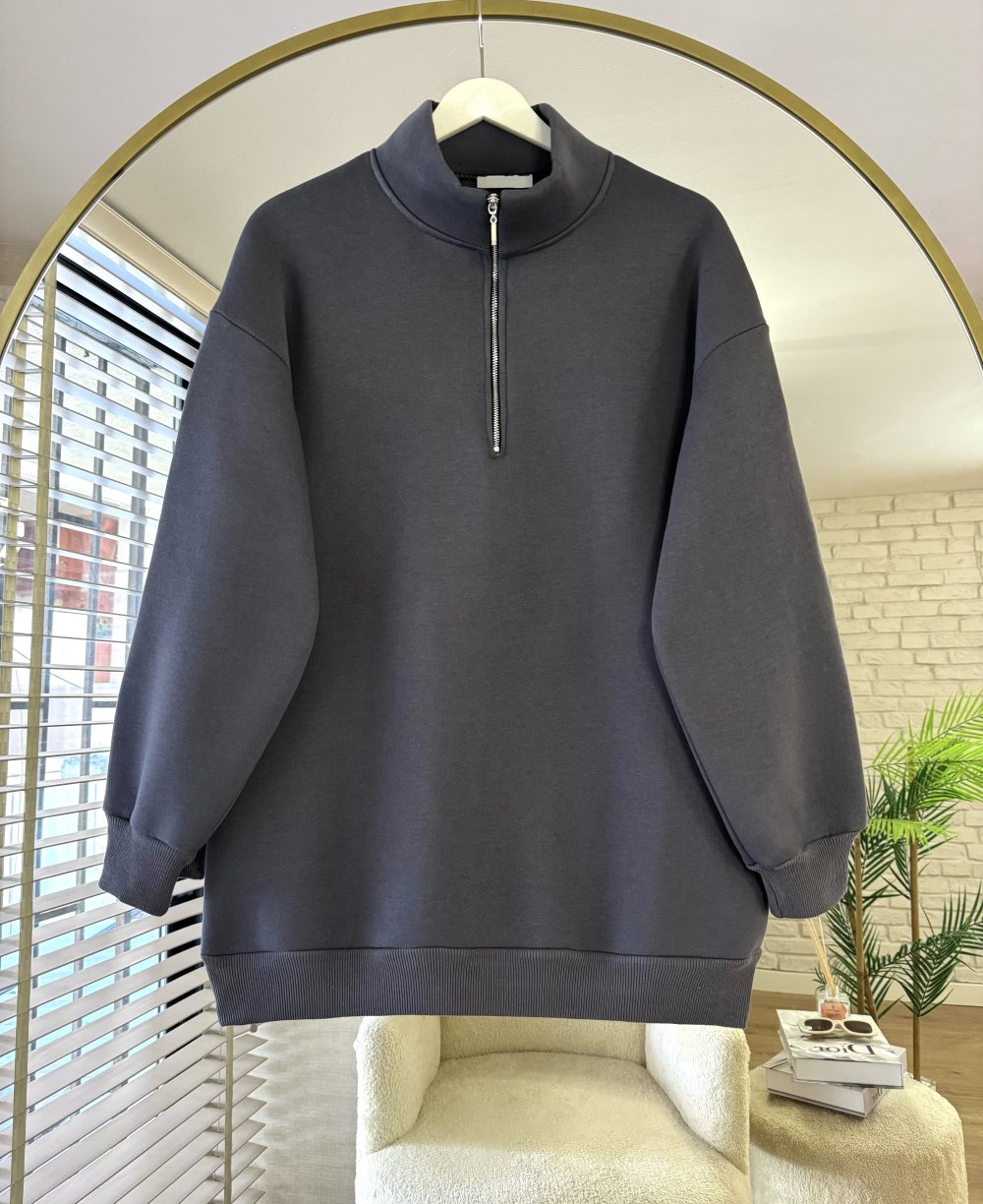 Yarım Fermuarlı Üç İplik Sweatshirt Antrasit